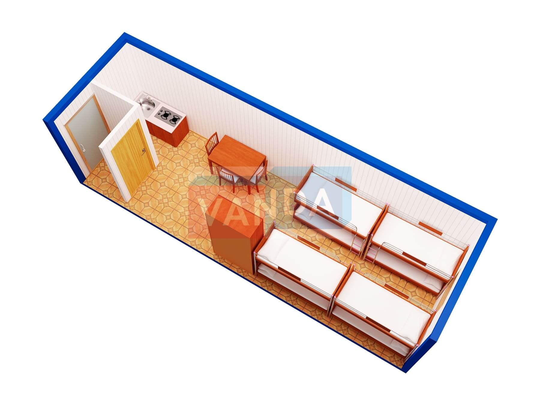 Строительная бытовка со сборкой на месте №4 (вариант 3) 5.8x2.2 12.76 Вагонка деревянная Имитация бруса 140 500 р. Уточняйте у менеджера