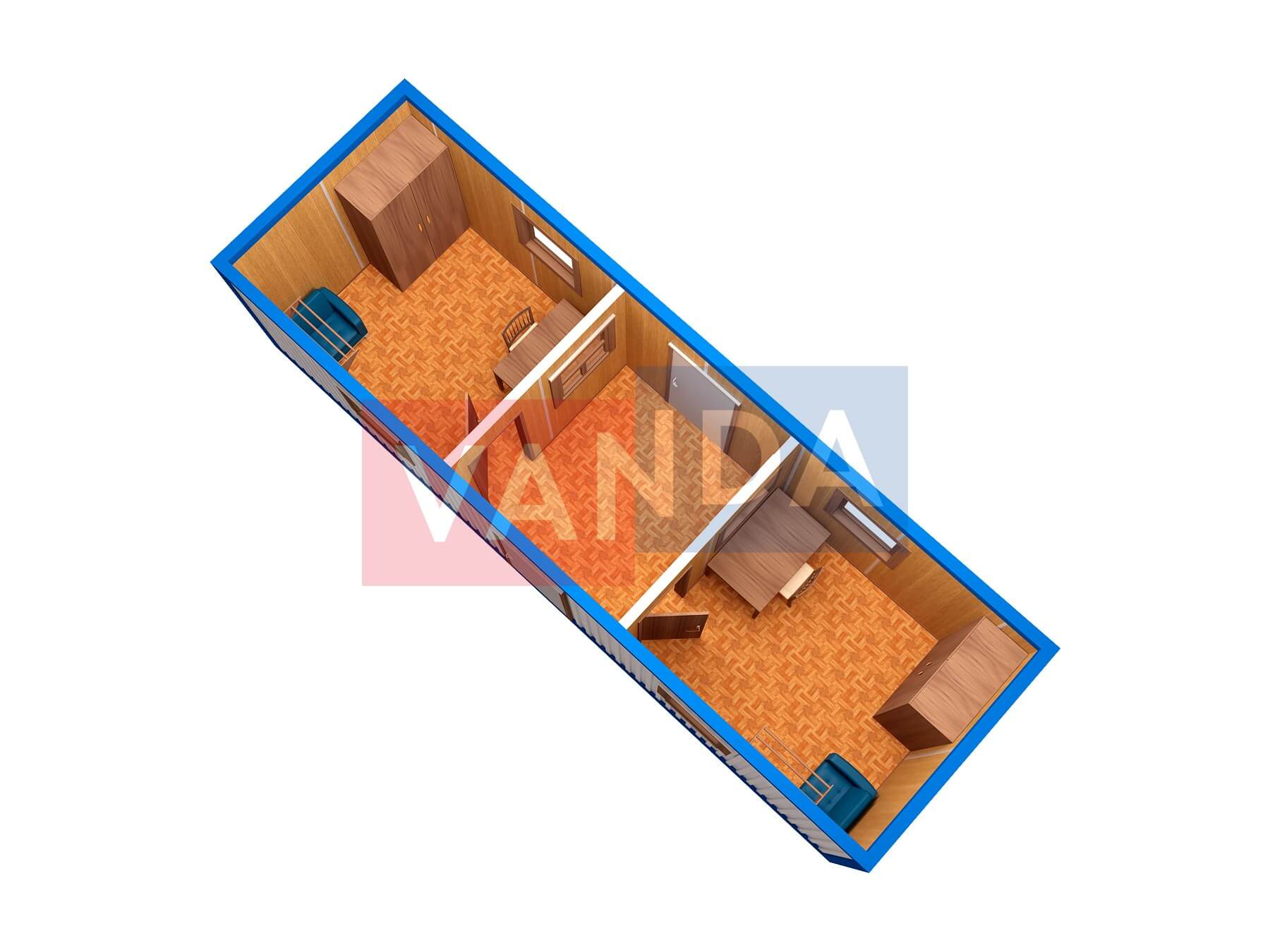 Модульная бытовка с плоской крышей 7.2x6.0 7.2x6.0 43.2 OSB 9 мм. Оцинкованный профлист 650 000 р. Уточняйте у менеджера